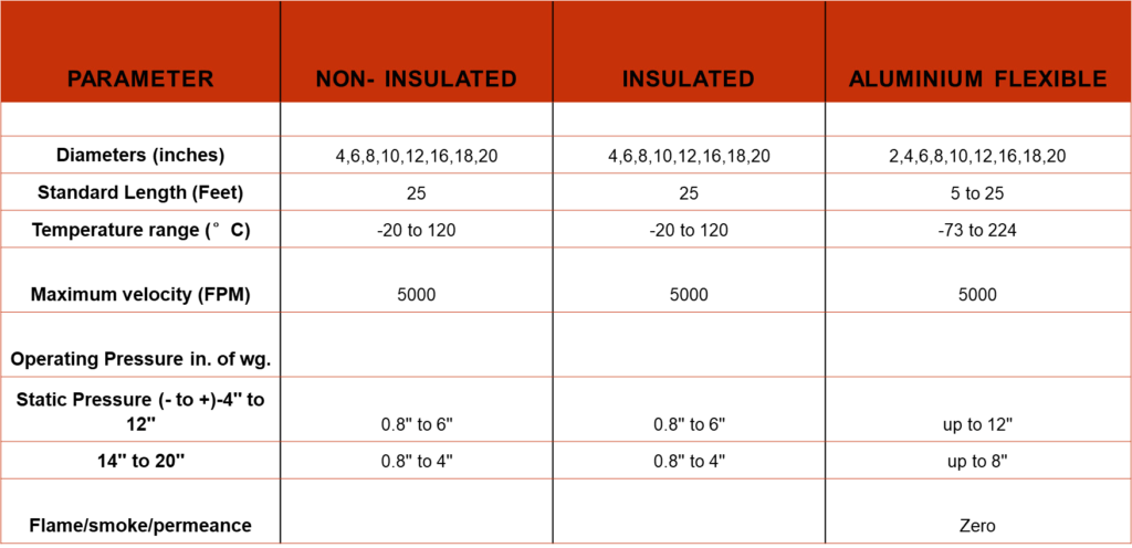 • Non-Insulated, Insulated and Aluminium Flexible Ducts